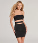 This strapless mini dress features a flattering cutout front design and bodycon silhouette. The smooth knit material effortlessly wraps your curves. highlighting the sleek design perfect for a night on the town.