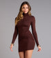 For the girl with a busy social calendar—this long sleeve mini dress is polished yet practical. featuring a sleek turtleneck. flattering knotted design. and a body-hugging fit that takes you from latte runs to casual dinners downtown.