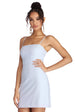 You'll look cute as a button in this pretty mini dress! The dress features a blue hue. a sleeveless bodice. a square neckline. adjustable narrow shoulder straps. a button down side seam and a mini length silhouette. Dress is composed of a linen fabric that offers a form hugging fit with minimal stretch.