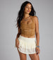 This eye-catching top features a bold flame stitch pattern with a sultry lace-up back that adjusts to your perfect fit. The cropped silhouette flatters your figure while the trendy design ensures all eyes are on you.