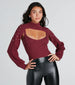 Show off the cutest style with this adorable sweater topper! It features a turtleneck with a fold-over design. long loose sleeves with tapered hems. chic faux pearl embellishments at the top of the sleeves. an ultra-cropped hem. and is composed of a comfy ribbed sweater knit fabric. Style with the matching sweater knit tank top and a pair of faux leather leggings!