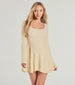 Twirl into style in this long sleeve knit skater dress. Featuring a square neckline and skater silhouette. this ribbed knit is your go-to for effortless charm.