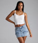 This cutesy casual knit cami top is an adorable essential with its dainty lace trim and small rosette accent. Pair with your fave lightweight cardigan.