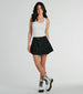 With this denim skort. you'll stay on the cutting edge of style! Perfect for casual plans or weekend trips. it features a flattering mid-rise waist. side pockets. and a flirty pleated mini A-line skirt overlay with shorts lining for coverage. Complete the look in a basic tee and booties.Â