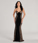 This sleeveless velvet formal dress features a flattering V-neckline and adjustable spaghetti straps. The lace-trimmed sides boast an hourglass effect along form-hugging mermaid silhouette and floor-length hem.Â