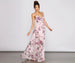 Create a stunning look for parties. bridal showers. or spring photoshoots in the Dana floral chiffon dress! She features a sleeveless bodice. spaghetti straps. a wrap-front V neckline. and a back zipper closure. Her high waist features a tie-front belt and flows out to a floor-length skirt with an A-line silhouette. The airy chiffon fabric showcases a blooming floral print. perfect for the season. Complete your outfit with dainty earrings and new heels.