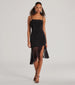You better grab your girls and go out tonight in this sleeveless midi dress! This stunning dress features a square neckline. spaghetti straps. and a bodycon silhouette to accentuate your figure. The sheer mesh ruffled slit midi-length hem adds a touch of sass! Complete the look in stiletto heels and a clutch.