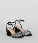 • Adjustable rhinestone trim ankle strap. buckle closure