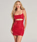 Keep it devious and chic this Halloween in a sleeveless sequin dress that features a scoop neckline with supportive spaghetti straps. a daring midriff cutout. and a curve-hugging mini-length hem. Complete the costume with the matching devil-horned headband or rhinestone wings.Â