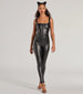 Dare To Allure Faux Leather Hook-Eye Catsuit