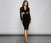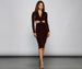Dare to button up in a midi dress that showcases your curves. The dress features a collared neckline. a button-down front. long sleeves. dual waist cutouts. and a midi-length silhouette. The dress is composed of a slinky lurex knit fabric that offers a form hugging fit with a moderate stretch. Complete look with mules and sleek hoops.