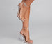 Show off your daring style with heels that command attention! The heels feature an open back. an open almond toe with a clear strap over the toe. a platform. a clear adjustable ankle strap. lucite block heel. Complete look with a bodysuit and mini skirt.