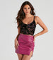 This floral velvet mesh corset was made to be seen at night! It features a sleeveless v-neck. adjustable spaghetti straps. underwire bust support. front hidden hook-eye closures. a smocked back. and a cropped hem. Complete the look with high-rise trouser pants for a wine night!