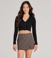 A darling crop cardigan features fitted long sleeves. a flattering V-neckline. and button-up front closures for multiple styling options. Perfect for styling with your favorite bottoms.