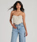 A darling floral bustier to pick for brunch this weekend! This stunning top features a strapless sweetheart neckline and underwire bust for a flattering fit. Flexible boning and multiple back hook and eye fasteners provide support and ensure comfortable wear while the cropped hem flatters your figure. Complete the look in a chic midi skirt and sandals.