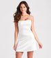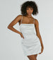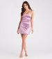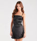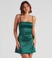 A perfect satin short dress for dressing up and flaunting your femme allure! Designed with smooth satin fabric. the mini dress features a sleeveless square neckline. adjustable spaghetti straps for the perfect customized fit. and a curve-hugging A-line silhouette. Complete your chic look in lace-up heels and earrings.
