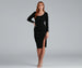 Go from office hours to happy hour in a snap with this classy sweater midi dress! It features long sleeves. a rounded neckline. a bodycon silhouette. and a side slit with snap button accents. Composed of a ribbed knit fabric with a moderate stretch. Style with a chic jacket and heels.