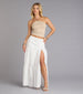 Boho. but make it bold—this high-rise maxi skirt keeps it flowy and feminine with a peasant silhouette. while the front slit adds an effortless allure. Perfect for brunch plans. coffee dates. and sunny day strolls.