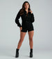 Your next daytime adventure calls for this trendy utility denim romper! Featuring slouchy long sleeves with elasticized cuffs. a collar neckline. button-down front closures. dual chest. and back pockets. belt loop accents along the waist. and a short-length cuffed hem. The romper is composed of premium denim fabric with minimal stretch. Complete the look with trendy sunglasses and sandals!