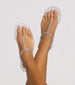Dazzle all day in these rhinestone jelly sandals perfect for looking stylish on vacay! They feature a round toe. sparkly jelly sole. and T-strap design with adjustable buckle closure. Complete the look in a cute midi dress.
