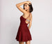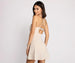 Glow and dazzle in a glitter dress that illuminates the night. This must-have dress features a sleeveless sweetheart neckline with a padded bust. sleek spaghetti straps that lead to a cross-back design. a dazzling lower back rhinestone embellished bar strap. and a mini-length skater skirt with a fit and flare silhouette. The glittering fabric perfectly styles with rhinestone earrings and chrome pumps.