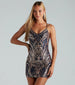 Dazzle like the diva you are in this sequin party dress at birthdays or nights out! It features a sleeveless V-neckline. dual sleek bungee spaghetti straps. an open strappy back design. and a flattering bodycon silhouette and mini-length hem. The dress is designed with a sequin-scroll embellished pattern on mesh fabric and has a stretchy knit lining. Complete the look in heels.
