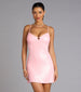 Bring the glitzy shine in this dazzling sequin mini dress featuring a sweetheart neckline with a flirty cutout and a flattering A-line silhouette. The padded bra cups offer support while the adjustable spaghetti straps allow a customized fit. Perfect for a school dance or party!
