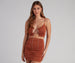 Bring the glamour in this stunning crop top! It features a sleeveless scoop neckline. spaghetti straps. a sexy front rhinestone lace-up design. a cropped. form-hugging fit. and a stretchy knit fabric. Style this top with the matching mini skirt and a pair of chic clear heels for your next night out.