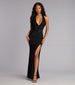 Made to dazzle under the lights. the Debbie formal dress pairs rhinestone floral mesh with a sculpted halter plunge neckline and open back for that undeniable wow factor. Its floor-length mermaid silhouette and front slit add graceful movement. made for grand entrances and unforgettable nights.