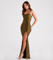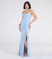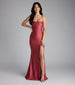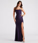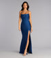 Flattery will get you everywhere in the Delia formal long dress that boasts a flattering mermaid silhouette with a high front slit for effortless allure all evening!