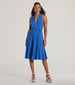 Step out looking delightful in this charming sleeveless midi dress for parties or showers! The halter pleated neckline and open back add a flirty touch. while the beaded tie waist cinches your waist for a flattering A-line silhouette. Complete the look with sunglasses and sandals!