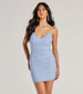 The Demi pearl beaded mini dress knows how to make an exit. The party dress showcases a sultry V-neckline. an open strappy back sure to make heads turn. and a bodycon silhouette. Pair with earrings.