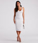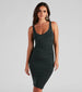 Look fabulous in a flash wearing this sleeveless midi dress for dinner and drinks! It features a showstopping bodycon silhouette. a V-neck. tank straps. and side ruched seams that hug every curve like a glove. Complete the look with chic stiletto heels.