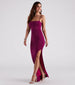 Effortless beauty embodies the Devon formal dress sure to make a striking impression on bridesmaids or holiday soirees! She stuns in a sleeveless square neckline. sleek spaghetti straps. a low cowl back accent. a form-hugging silhouette. a sultry side slit. and a floor-grazing long hem. The formal dress is composed of a soft and sleek knit fabric with a knit lining and moderate stretch. Style with a statement evening bag and heels to complete the look!