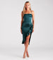 Dinner Party Satin Ruffle Midi Dress