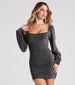 Shine bright on the dance floor in this eye-catching glitter knit mini dress! It features a square neckline. long loose balloon-style sleeves with tapered hems. ruching down the side seams. and a short. curve-hugging silhouette. The metallic glitter knit fabric offers plenty of stretch. Complete the look with platform heels.