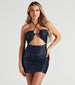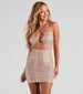 Shine all season in a sequin mini dress designed to catch the dance floor lights! The short dress features a sleeveless. halter neckline with keyhole accent. neck tie closure. cutout bodice. and a bodycon silhouette. Complete the look in platform heels.