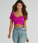 Everyone will take notice of how cute you look in this chiffon crop top - perfect for brunch or day dates! Crafted from chiffon fabric. this top features adorable puff short sleeves. a flattering scoop neckline. and a ruched bust for added charm. The cropped hem and tie-back straps add a stylish touch. Complete the look in trendy denim jeans and heels.
