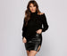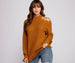 Give your everyday fall look a trendy feel in this distressed crew neck sweater! It features a cold shoulder detail. destructed hems. and an overall relaxed and comfortable fit. Pair this sweater with dark wash denim and booties for a night at the pumpkin patch.