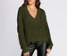 You'll be distressed to impress with this knit sweater! It features a V neckline. long sleeves with destructed detailing. and a relaxed fit with a distressed hem. The ribbed knit fabric offers moderate stretch.