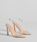 Looking for the limelight? It will always find you in these faux leather heels! They feature a sleek pointed-toe with a curved strap. an adjustable ankle strap with buckle closure. and a stiletto heel and cushioned insole. Complete the look in a sleeveless midi dress for a chic style.