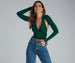 Create a diva moment with a halter top that stuns from all angles. The top features a halter neckline. an attached topper with long sleeves. a tie-back accent at the nape of the neck. ruched drawstrings on each side. and a cropped hem. The halter is composed of a slinky lurex-like fabric that offers a form hugging fit with a moderate stretch. Complete look with faux leather joggers.