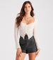 Don't let your girls tempt you from taking this sultry crop top out for a good time! It features fitted long sleeves. an open V-neckline. a center front slit accent. and is composed of a textured sheer knit fabric. Complete the look in distressed denim jeans.