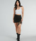 With country-inspired details. this faux suede mini skirt is an effortless choice for festivals and concerts!  Made with soft faux suede. this mini-skirt is a must-have for any fashion-forward girlie. The high-rise waist and bodycon silhouette flatter your figure. while the side cutout with fringe adds a touch of playful charm. Complete the look in a bustier and cowboy boots!