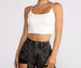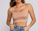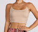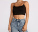 This crop top is just what your basics collection is missing! This essential top that goes with everything features a flattering scoop neckline. sexy thin double straps. a V strap accent at the back. and a cropped hem. The top is composed of a knit fabric that offers a relaxed fit with a moderate stretch. We love to dress it up with denim and heels for GNO.