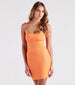This casual mini-dress will make everyone do a double-take! It features a sleeveless scoop neckline. spaghetti straps. an open back with a caged strap design. a bodycon silhouette. and a mini-length hem. The dress is composed of a stretchy rib knit fabric with a sewn-in knit lining. Complete the look in hoop earrings for a backyard bbq.