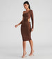You'll draw all the attention to you in this one-shoulder midi dress perfect for a casual lunch with friends! The dress features a single long sleeve. an adjustable drawstring waist cutout. a side ruched seam. and a form-hugging fit. Complete the look in chic lattice booties.