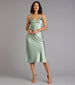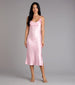 Soft. sleek. and endlessly romantic—this satin midi dress drapes with a cowl neckline and delicate strappy open back. Perfect for weddings. date nights. or any occasion that calls for subtle elegance with a flirty allure.