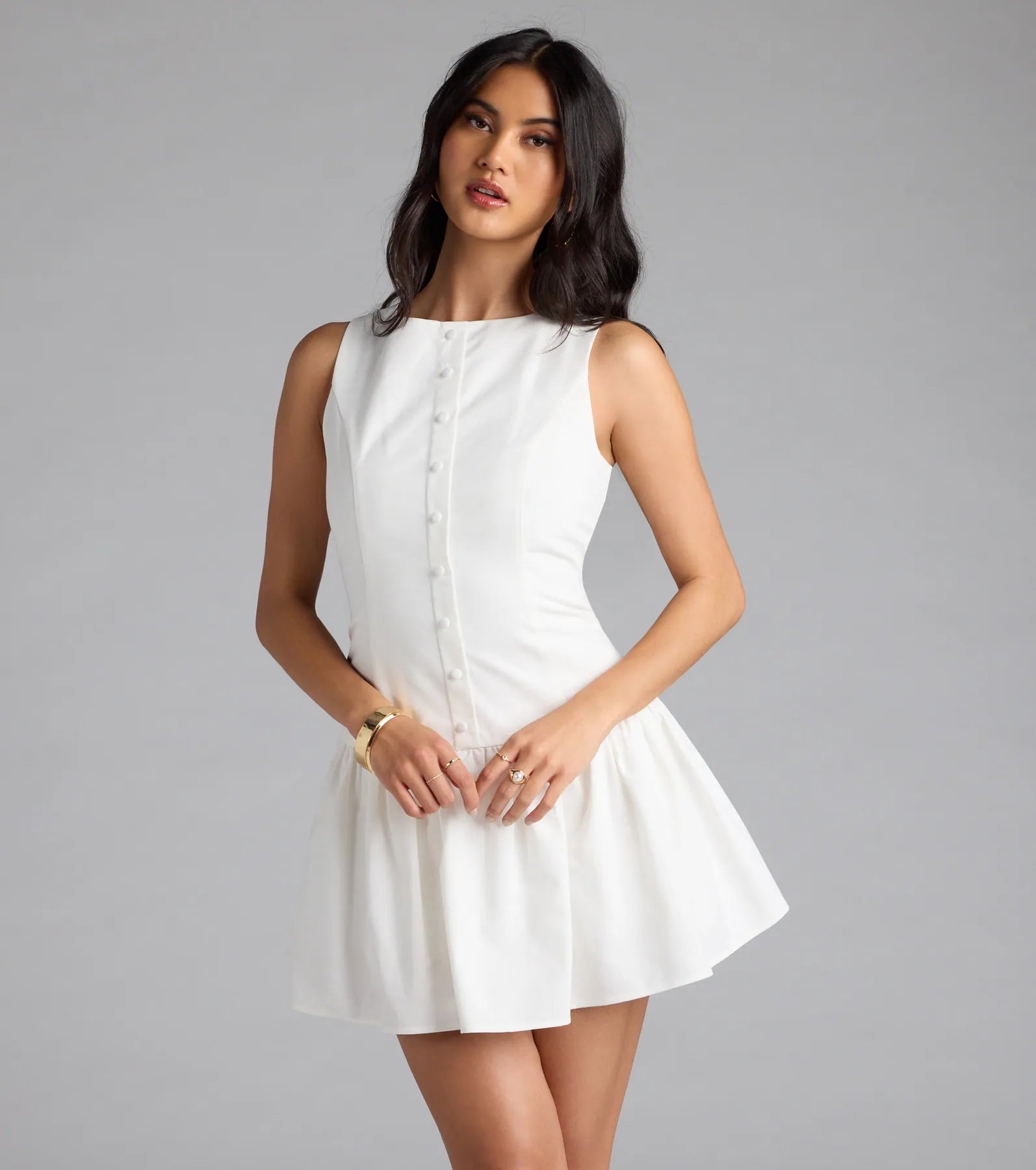 Pack for the perfect East Coast summer with this chic linen skater dress! Adorned with faux button accents and a ruffled mini-length hem. this dress will make you stand out in style.