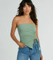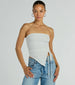 Capture attention easily in this strapless crop top this spring or summer! The strapless neckline bares your shoulders and the adjustable drawstring helps you achieve the perfect fit. while the slit accent and asymmetrical crop hem flaunt your figure. Complete the look in skinny jeans and sandals.